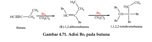 satu mol alkuna membutuhkan dua mol HX. Contohnya, reaksi